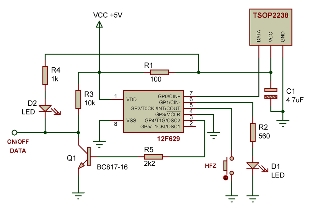 Çıkışı “Off” yapmak için kumandadan ilgili tuşa (hafızaya alınan tuş) bir kez basılır. D1 Ledi yanar ve söner, D2 Ledi söner. “On-Off” çıkışı +5 volt seviyesine çıkar.
