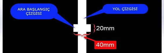8. Ara başlangıç çizgisinin toplam boyu 40 mm dir. Yol çizgisinin merkezi dikkate alınarak yerleştirilmiştir. (Şekil 3)